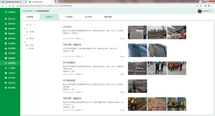 2、现场进度与隐患联动管控,搭载多项目现场总览看板,一屏掌控进度与隐患分布,异常情况自动标红预警,支持穿透查看现场细节,实现进度与安全协同管控;